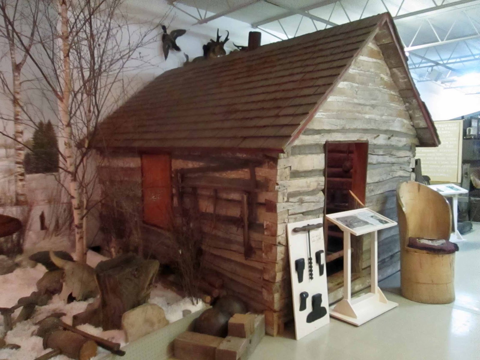 The first part of the exhibits are about who lived here in the 18th and 19th centuries. One thing that was new to me is a fur trapper's cabin. One can't live in Minnesota for very long without knowing the early Europeans here were fur tappers and traders, but this is the first time I've seen how they lived.